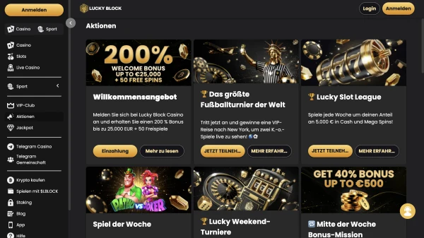 Damit die Erwartungen klar bleiben, hat jeder LuckyBlock Bonus auf der Aktionsseite die teilnahmeberechtigten Spiele und Zeitlimits aufgeführt. Wir empfehlen, vor dem Start einer Session den Hinweis &bdquo>Teilnahmeberechtigte Spiele“ zu prüfen, besonders für Turnier-Teilnahmen.